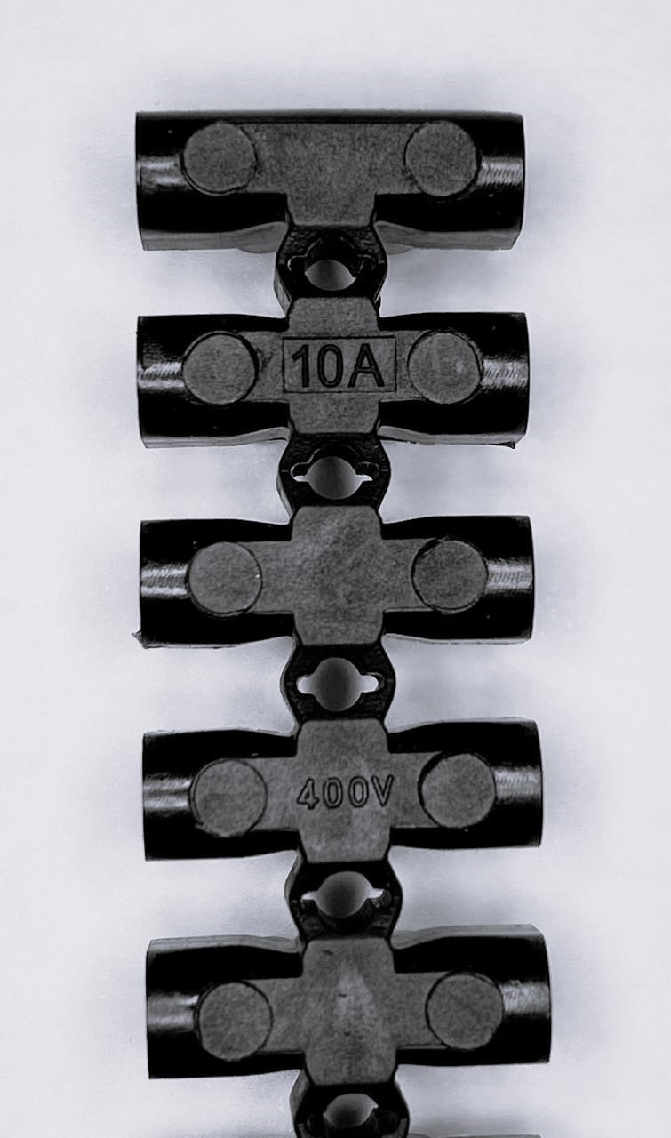 Each 12-Way terminal strip has the voltage and current rating imprinted underneath.